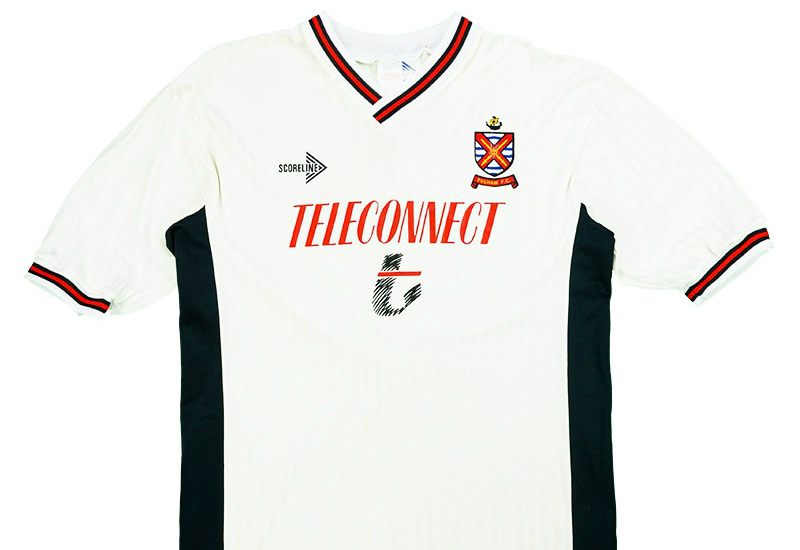 Fulham 1989-90 home shirt by Scoreline with great vintage design and classic Teleconnect sponsor, as worn when the side just avoided relegation to the Fourth Division by one point over Cardiff in Ray Lewington's last season in charge.