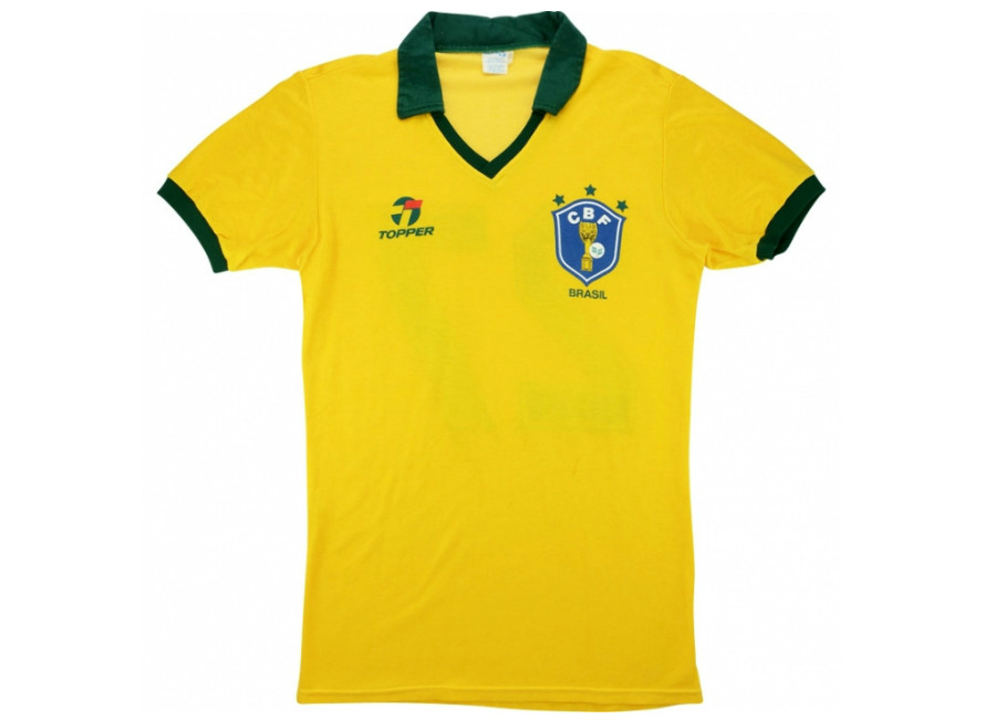 Brazil 1986 player shirt by Topper believed to have been issued for the friendly match against Finland played at Estadio Nacional Mane Garrincha, Brasília on the 17th April 1986.
