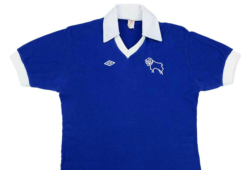 Derby County 1975-76 player shirt by Umbro believed to have been issued to or worn by a #7 during the season the side played in the European Cup but were defeated in the 2nd Round despite hammering Spanish giants Real Madrid 4-1 at the Baseball Ground.