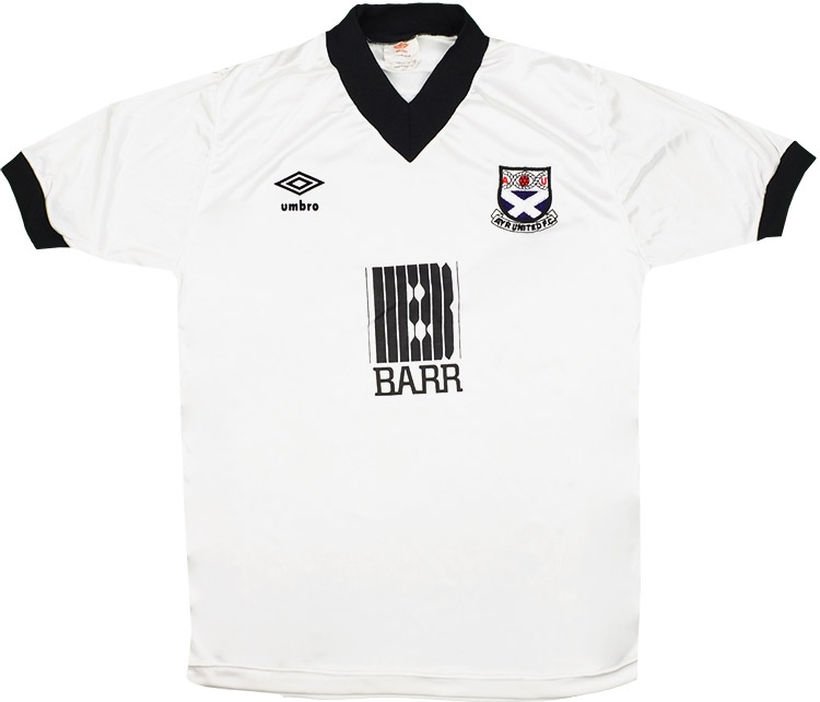 Ayr United 1983-84 home shirt by Umbro with classic Barr sponsor as worn when The Honest Men successfully battled to avoid relegation from Division One under boss George Caldwell. Barr were the club's first ever sponsors and their logo appeared on the team's shirts between 1981-87.