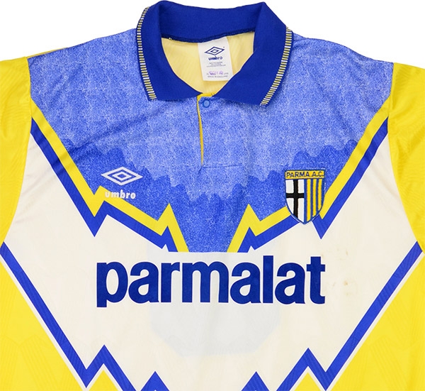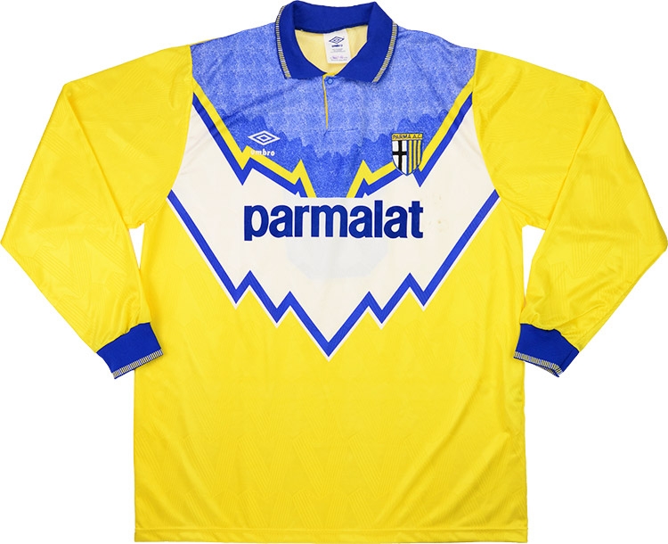 The hosts rallied though and found an equaliser through Fortunato and held on for the point. Osio was a club stalwart of the Serie B days and made 28 appearances in this campaign helping the Gialloblù claim their first ever silverware in lifting the Coppa Italia with victory over Juventus. The midfielder was at the Ennio Tardini for 6 years, later tasting action in Brazil with Palmeiras. This classic Umbro design was also worn by British sides Celtic, Nottingham Forest and Oldham in the early 90's.