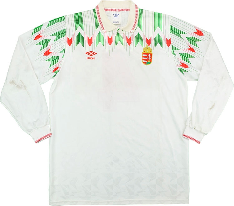 Hungary 1991 player shirt by Umbro believed to have been match worn in the friendly match against Ireland played at Stadion ETO, Gyor on the 11th September 1991.