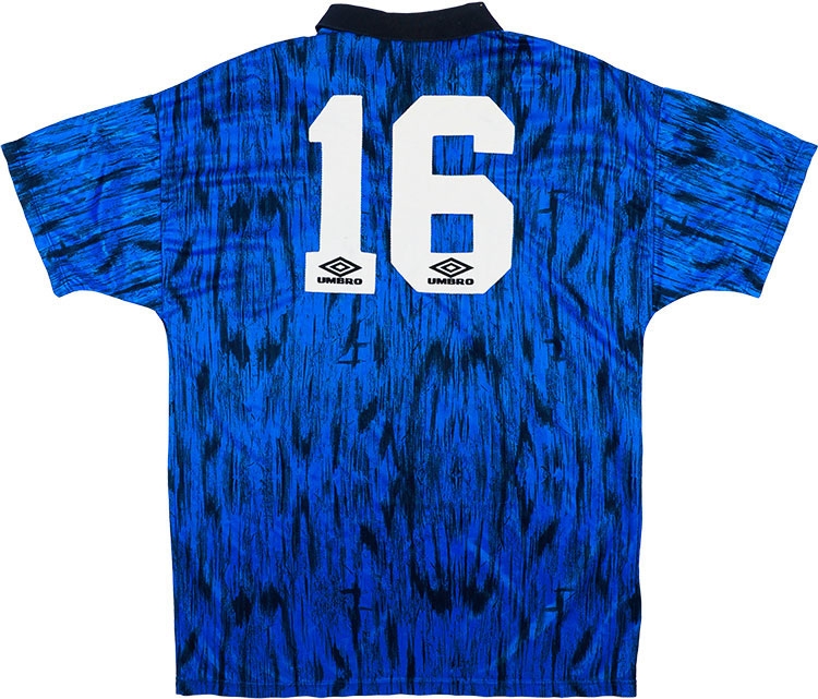 Manchester United 1992-93 player shirt by Umbro believed to have been prepared for a #16 in the 1992-93 season. This famous design was used in United's first match in the new Premier League and vital wins at Anfield and Highbury on the road to the club's first league title in 26 years.
