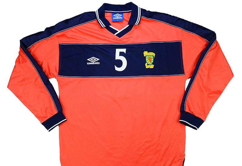 Scotland 1999-00 player shirt by Umbro believed to have been issued to or worn by the #5 in the 1999-00 season. The side concluded their qualification campaign for Euro 2000 in this year.
