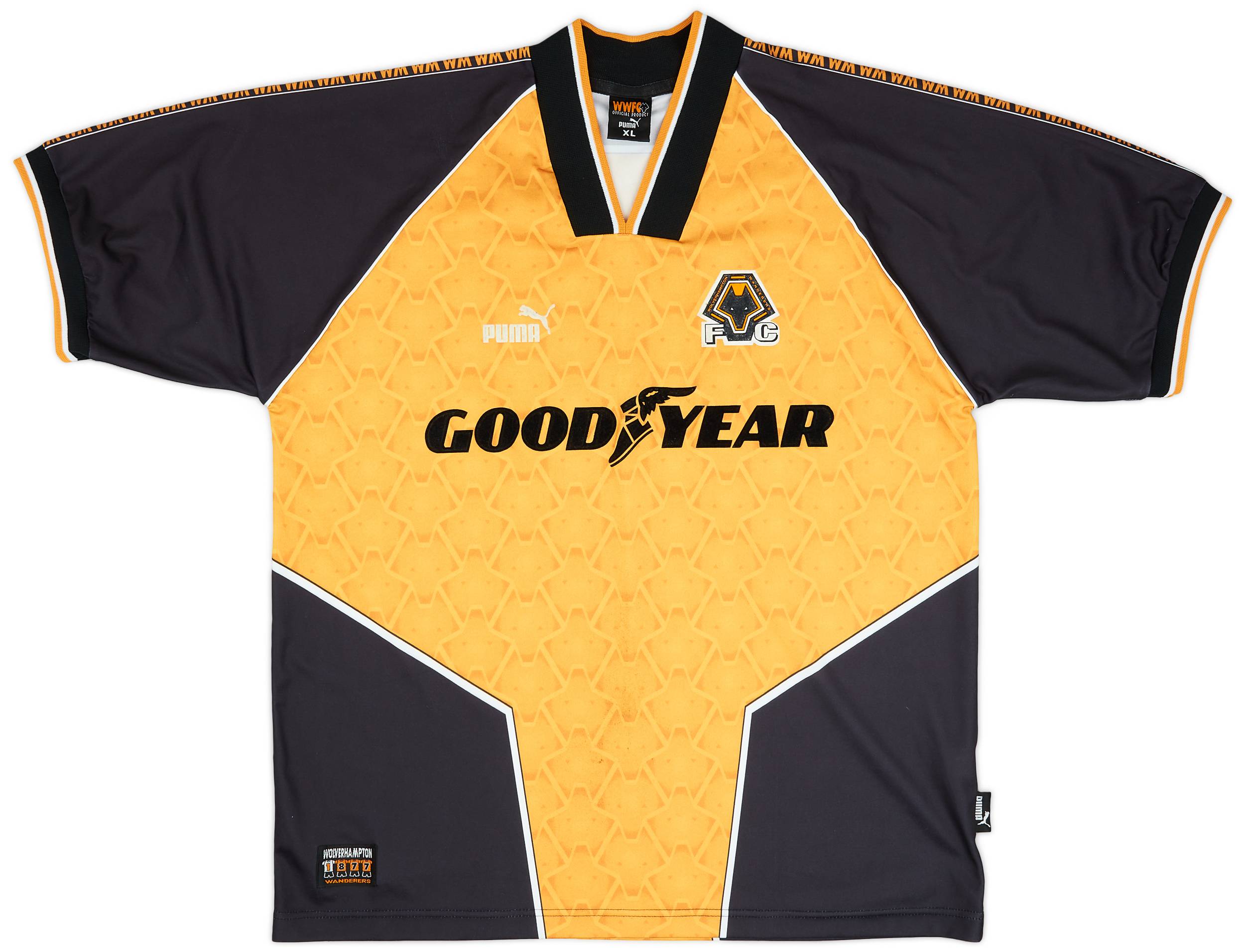 Wolverhampton Wanderers’ home shirt for 1996 to 1998 was produced by Puma and worn in First Division campaigns that included a play off run and an FA Cup semi final.