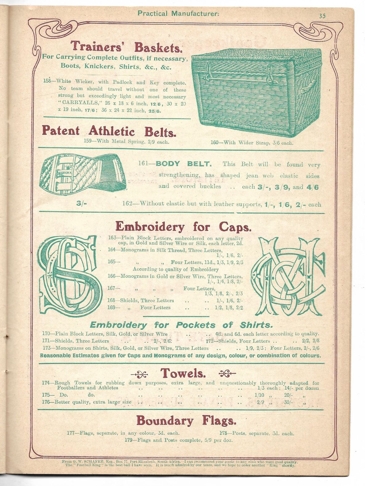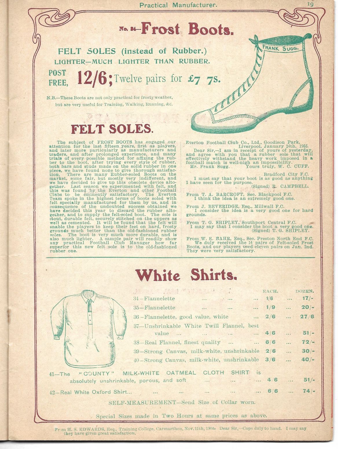 Recently shared by football memorabilia collector John Daniels, these antique “Athletic Manufacturer” catalogue pages give an insight into the football outfitting scene of 1904.
