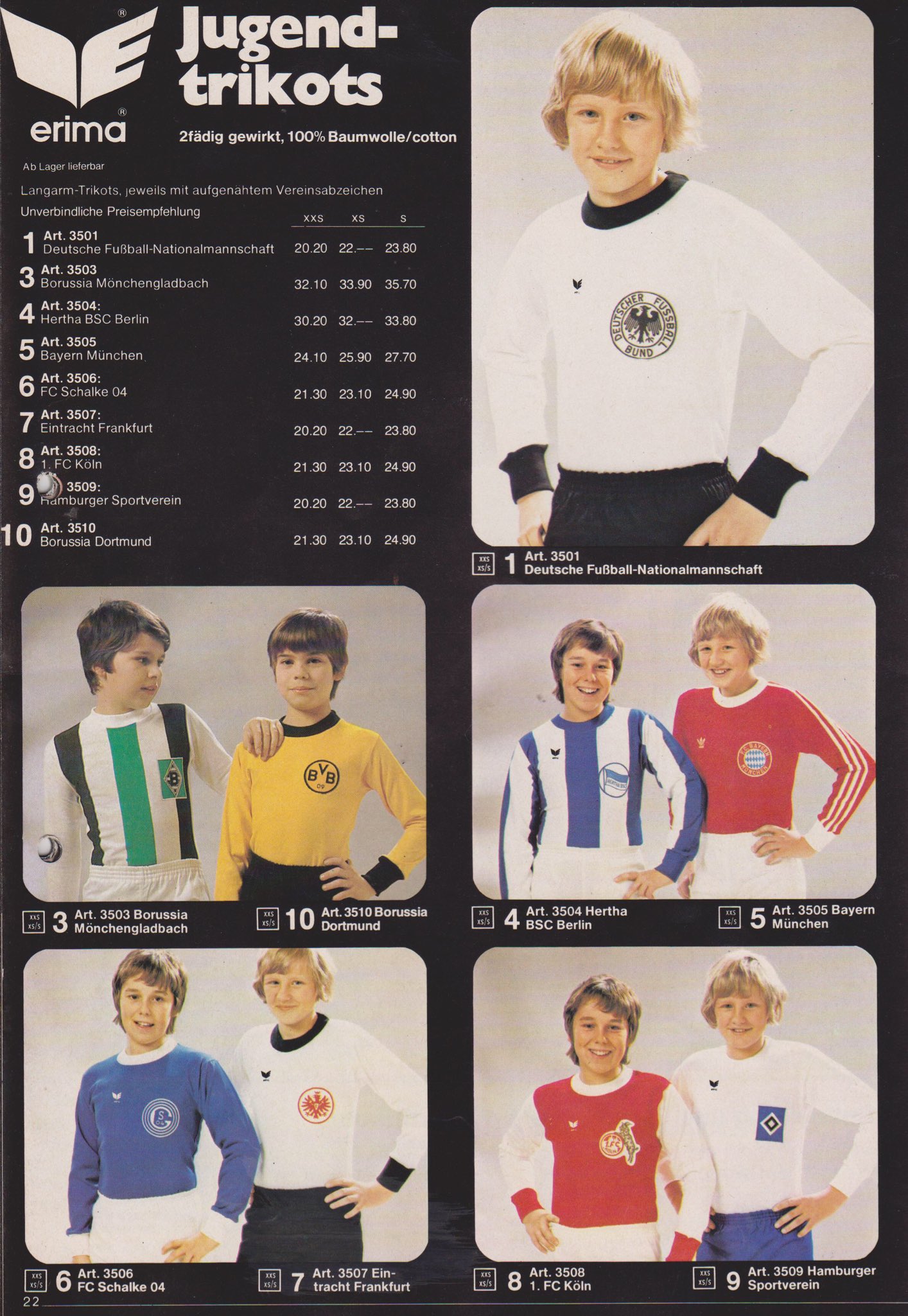 Highlights amongst the teamwear sections include, with hindsight, Paris Saint-Germain-styled torsos with sleeve bands to match, and an approximation of the time’s Admiral England kit. An adidas Bayern Munich shirt may have sneaked into the catalogue, but Erima were holding their own as the 20th century began its final quarter.