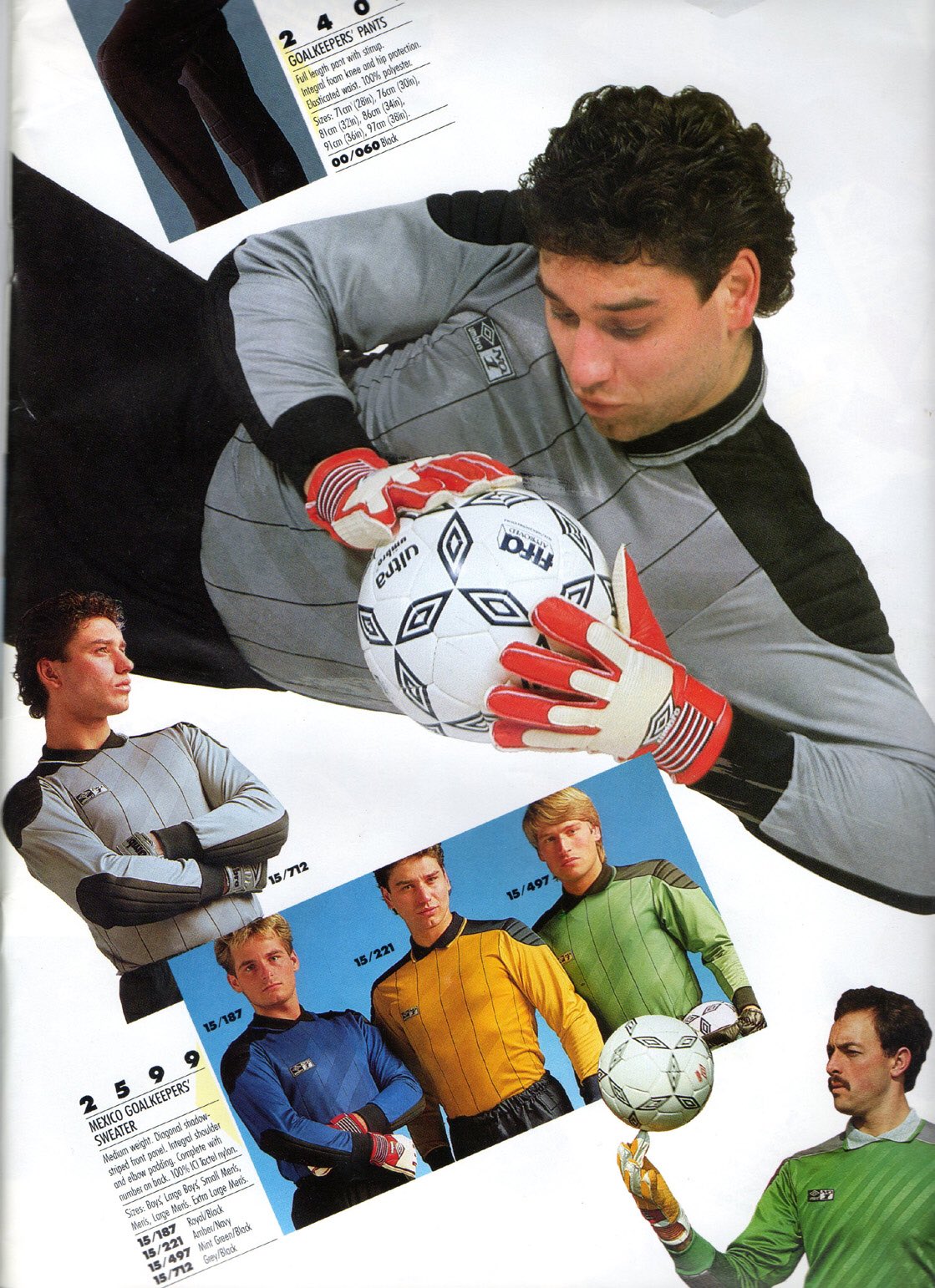 The classy Umbro goalkeeper designs of the mid-to-late-1980s may well give credence to these catalogue pages’ claim of the double diamond brand being “The Name of the Game” - certainly between the sticks.
