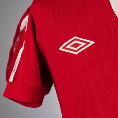 In a classic Umbro template, the design boasts diamond shoulder-and-sleeve taping, the double-diamond logo on the chest and a shield-based embroidered Robins crest.