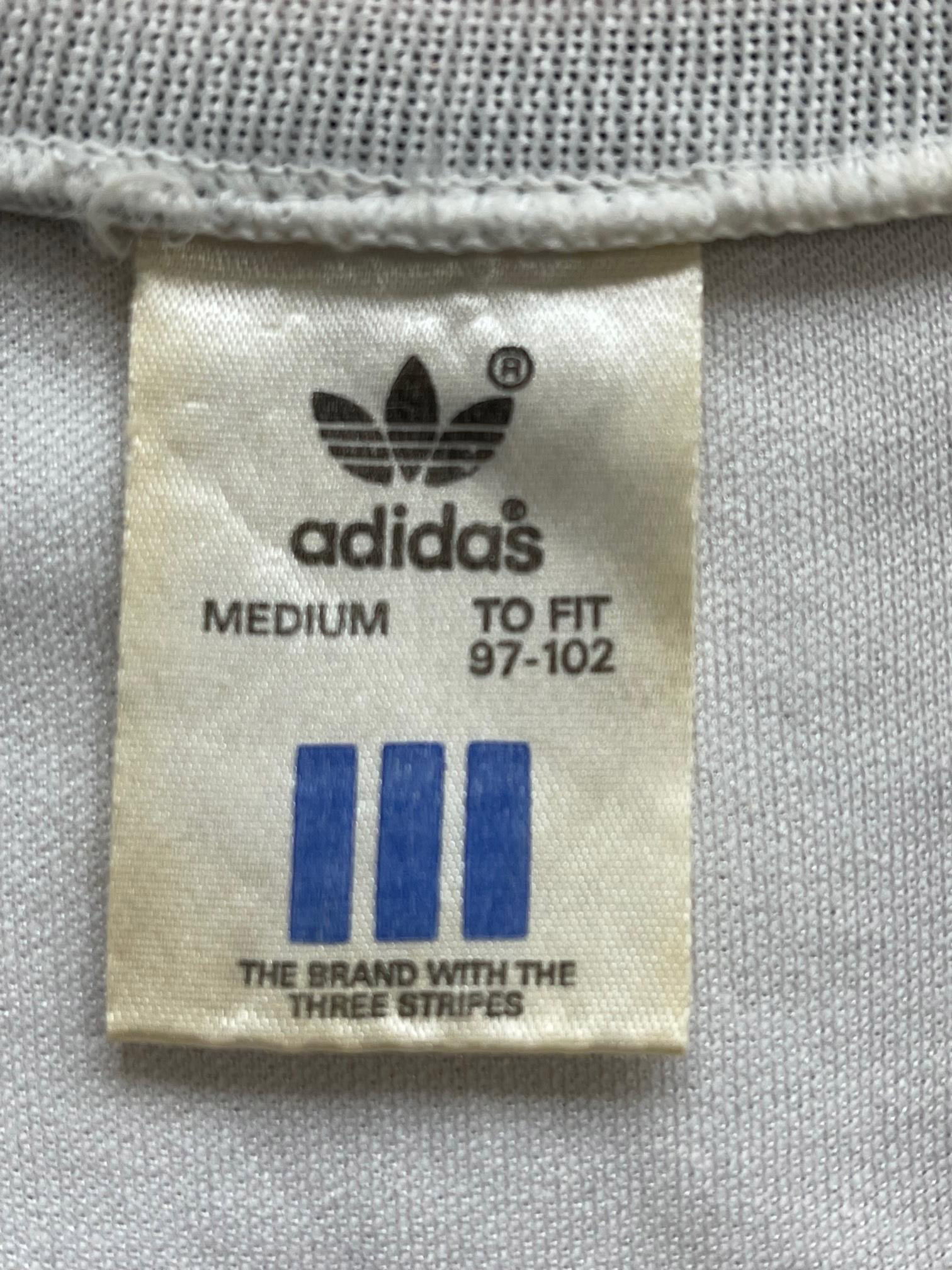 The Away design, which is slightly different to the domestic version in missing the two adidas logos from the sleeves and instead having one on the chest, carries the embroidered crest centrally and also has competition detailing on the breast.
