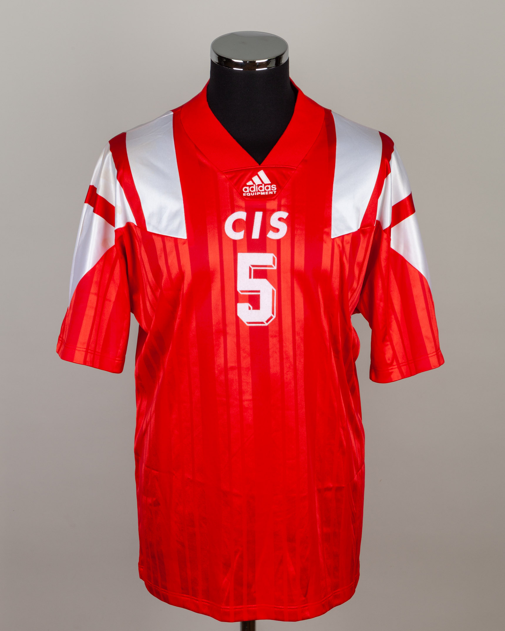 The shirt was swapped with Kuznetsov’s Rangers team-mate Ally McCoist after the match in Norrköping on 18 June 1992, when Scotland defeated the CIS 3-0. This fixture marked the final appearance of the CIS at a major tournament, with the break-up of the Soviet Union the year before leading to this short-lived team competing under a transitional identity.